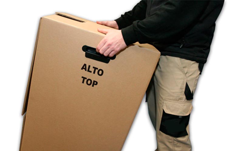 • Sistema de soporte que garantiza un mayor aislamiento del polvo. Lleva incorporadas unas asas para su manipulación, evitando tener que agujerear la caja como asa de transporte.
